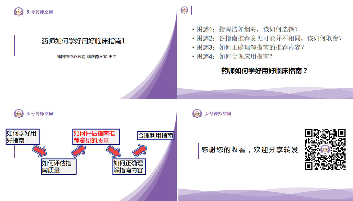 臨床指南好比師長,幫助我們將最好的證據轉化為最好的臨床實踐,臨床藥師日常工作的方方面面都離不開它。為了幫助大家更好地利用臨床指南服務于臨床,頭號藥師空間邀請到了綿陽市中心醫院王宇臨床藥師,帶領大家從循證醫學的高度,“俯瞰”浩如煙海的臨床指南。